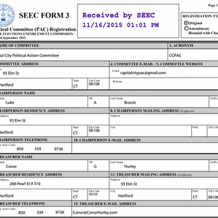 Received campaign donations from a PAC run by the Mayor of Hartford, Luke Bronin